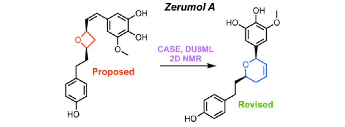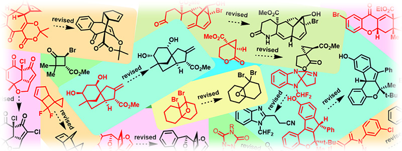 Brief overview of recently reported misassigned natural products and their in silico revisions enabled by DU8ML, a machine learning-augmented DFT computational NMR method. Novitskiy, I.M.; Kutateladze, A.G. Nat. Prod. Rep., 2022, 39, 2003-2007. [DOI: 10.1039/D2NP00051B]